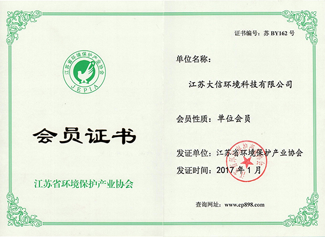 江蘇省環(huán)境保護(hù)產(chǎn)業(yè)協(xié)會(huì)會(huì)員證書