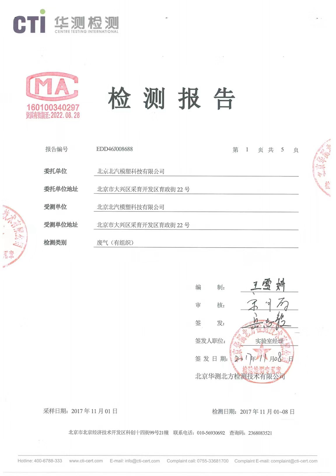 北京北汽模塑——煙氣檢測報告