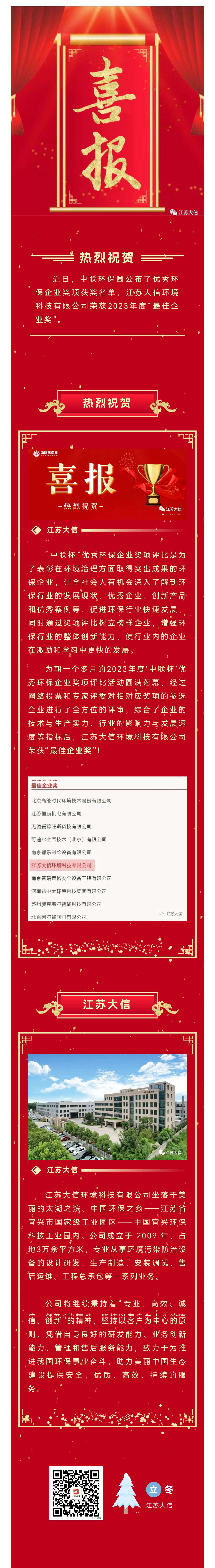 喜報|江蘇大信榮獲2023年度“中聯(lián)杯”最佳企業(yè)獎