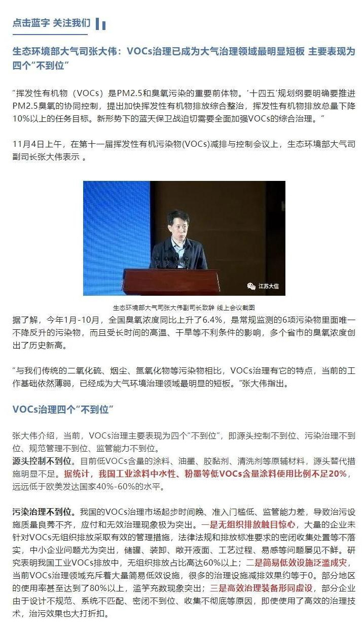 “揮發(fā)性有機(jī)物(VOCs)是PM2.5和臭氧污染的重要前體物。‘十四五’規(guī)劃綱要明確要推進(jìn)PM2.5臭氧的協(xié)同控制,提出加快揮發(fā)性有機(jī)物排放綜合整治,揮發(fā)性有機(jī)物排放總量下降10%以上的任務(wù)目標(biāo)。新形勢(shì)下的藍(lán)天保衛(wèi)戰(zhàn)迫切需要全面加強(qiáng)VOCs的綜合治理。”